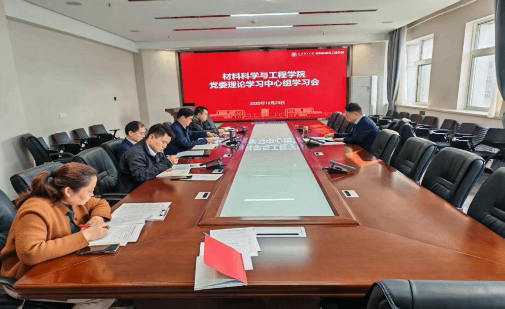 10 月 29 日上午 9 时,材料科学与工程学院党委理论学习中心组 2025 年第 8 次学习会在迎西校区博学馆 D 座 813 会议室召开。学院党委书记游志勇主持会议并领学,党委副书记、纪委书记郑芳,副院长邓坤坤、牛晓峰,新材料重点实验室副主任樊建锋、挂职副主任郭俊杰出席会议。