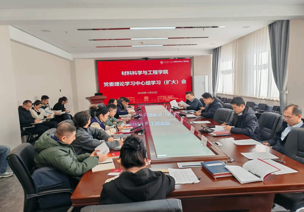 为深入学习贯彻习近平新时代中国特色社会主义思想和党的二十届四中全会精神,切实把思想和行动统一到党中央重大决策部署上来,11 月 25 日上午 10 时,材料学院党委理论学习中心组 2025 年第 9 次学习(扩大)会在迎西校区博学馆 D 座 813 会议室召开。