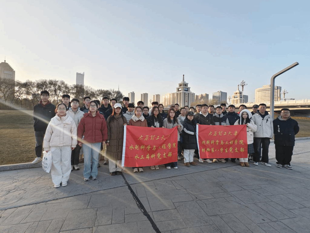 寒风凛冽,汾河如练;松涛低回,双塔凝眸。11月25日,太原理工大学材料科学与工程学院材料第八学生党支部20余名研究生党员,打破课堂边界,将主题党日活动的“课堂”搬到历史长河与自然画卷之间,以“暖冬护汾河・致敬英烈魂”为主题,开启了一场跨越时空的“红色铸魂+绿色践行”双线之旅。上午联合阳光之家临时党支部赴太原双塔寺烈士陵园缅怀革命先烈、传承红色基因,下午携手水利学院水工本科党支部沿汾河景区岸线开展净滩行动,用滚烫的青春热血与坚实的躬身实践,为冬日并州添上了一抹最动人的亮色。