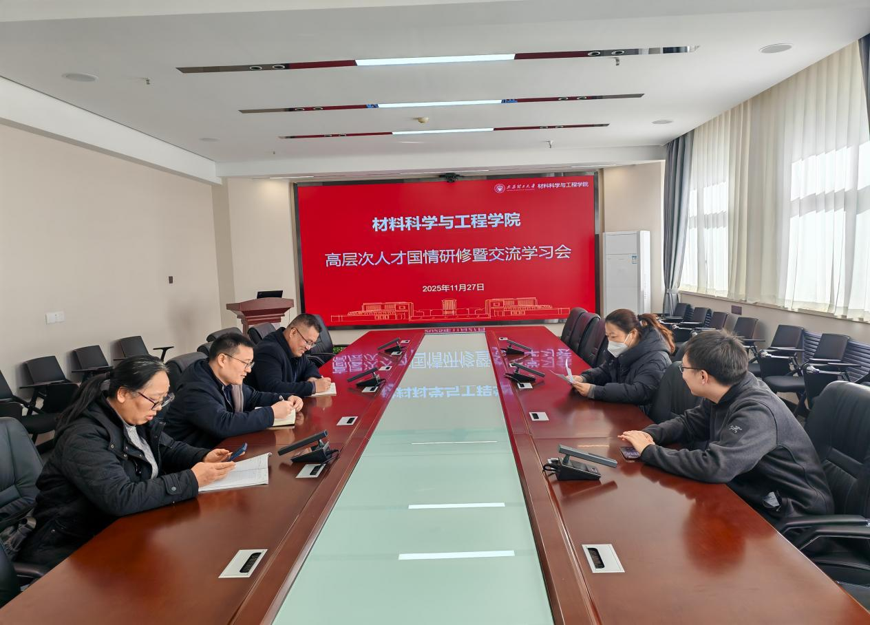 为深入学习贯彻中共二十届四中全会精神,全面落实山西省人才强省战略部署,凝聚高层次人才服务区域发展的思想共识与行动合力,11 月 27 日,材料科学与工程学院在迎西校区博学馆 D 座 813 会议室隆重召开高层次人才国情研修暨交流学习会。学院党委副书记郑芳主持会议并作专题解读,全院博士、教授等高层次人才代表齐聚一堂,共学政策、共话发展、共悟初心。