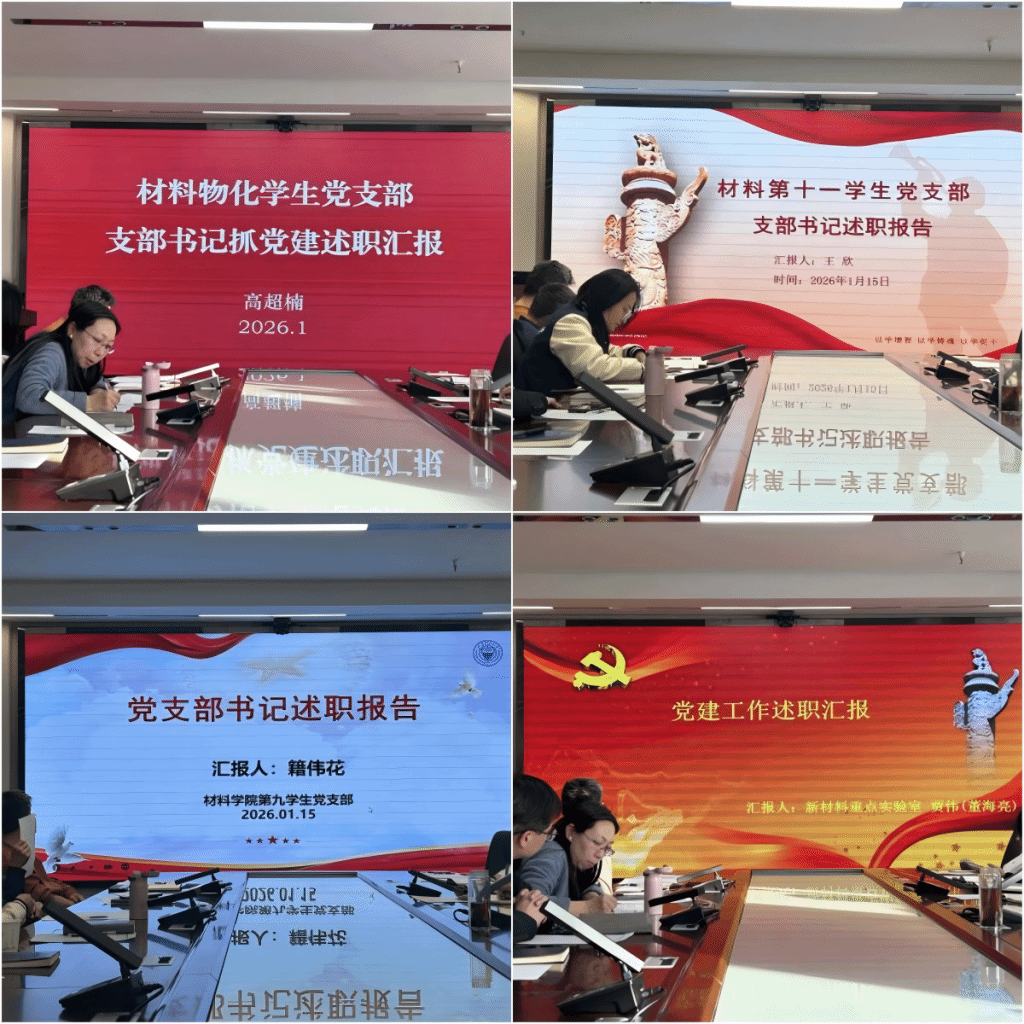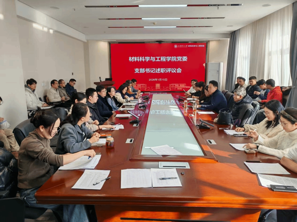 材料科学与工程学院党委2025年度党支部书记抓党建工作述职评议会议,于2026年1月16日在813会议室成功召开。述职评议会议由院党委书记游志勇主持,院党委专职组织员、职能办公室负责人及全部23个党支部的支部书记和党员代表参会。